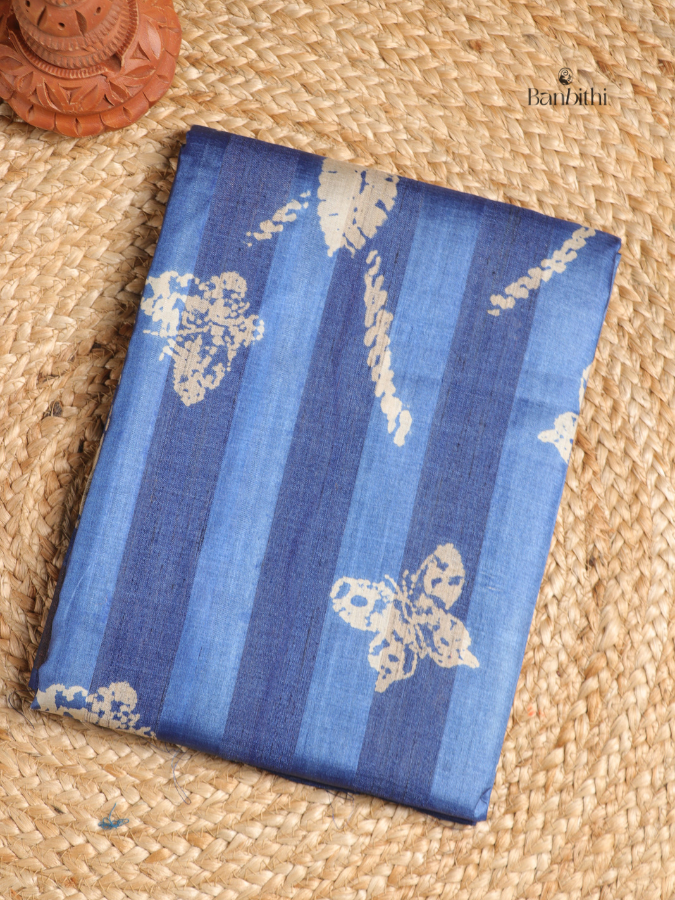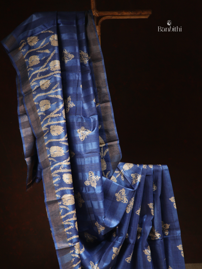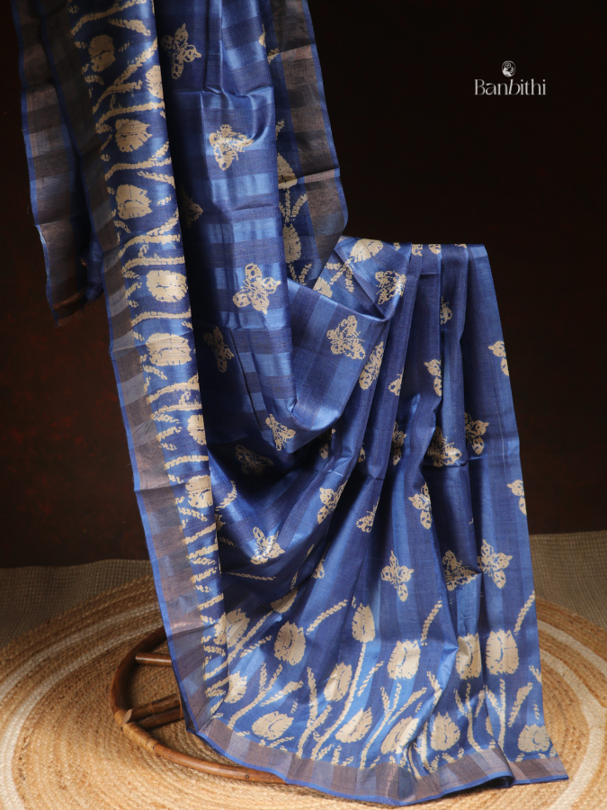 Batik Block Tussar Kosa Silk Saree – Blue Batik Block Tussar Kosa Silk Saree – Blue