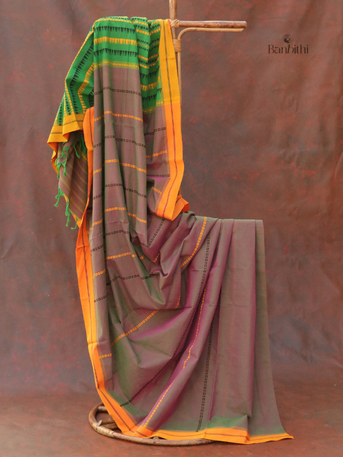 Begumpuri Pure Cotton Handwoven Saree – Brown With Green Begumpuri Pure Cotton Handwoven Saree – Brown With Green