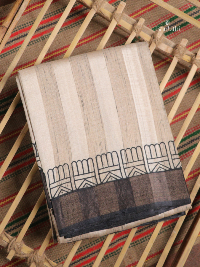 Bhumija Handwoven Tussar & Kosa Silk Saree – Original Tussar with Black (Varient 2)