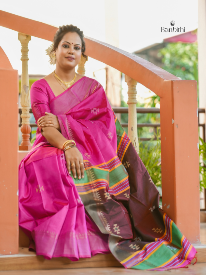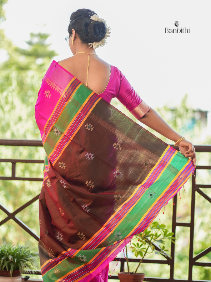 • Bishnupur Silk Saree – Pink with Brown