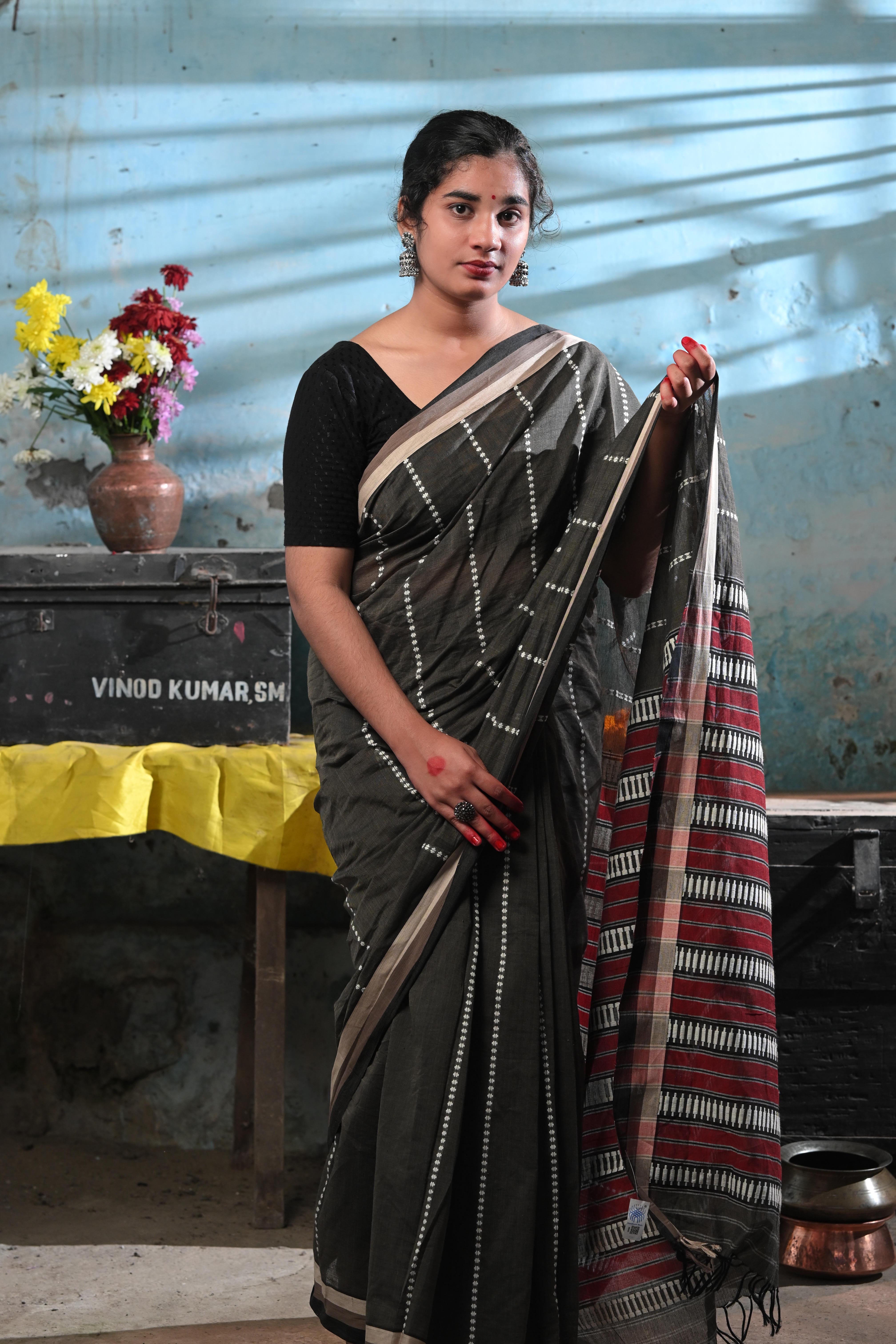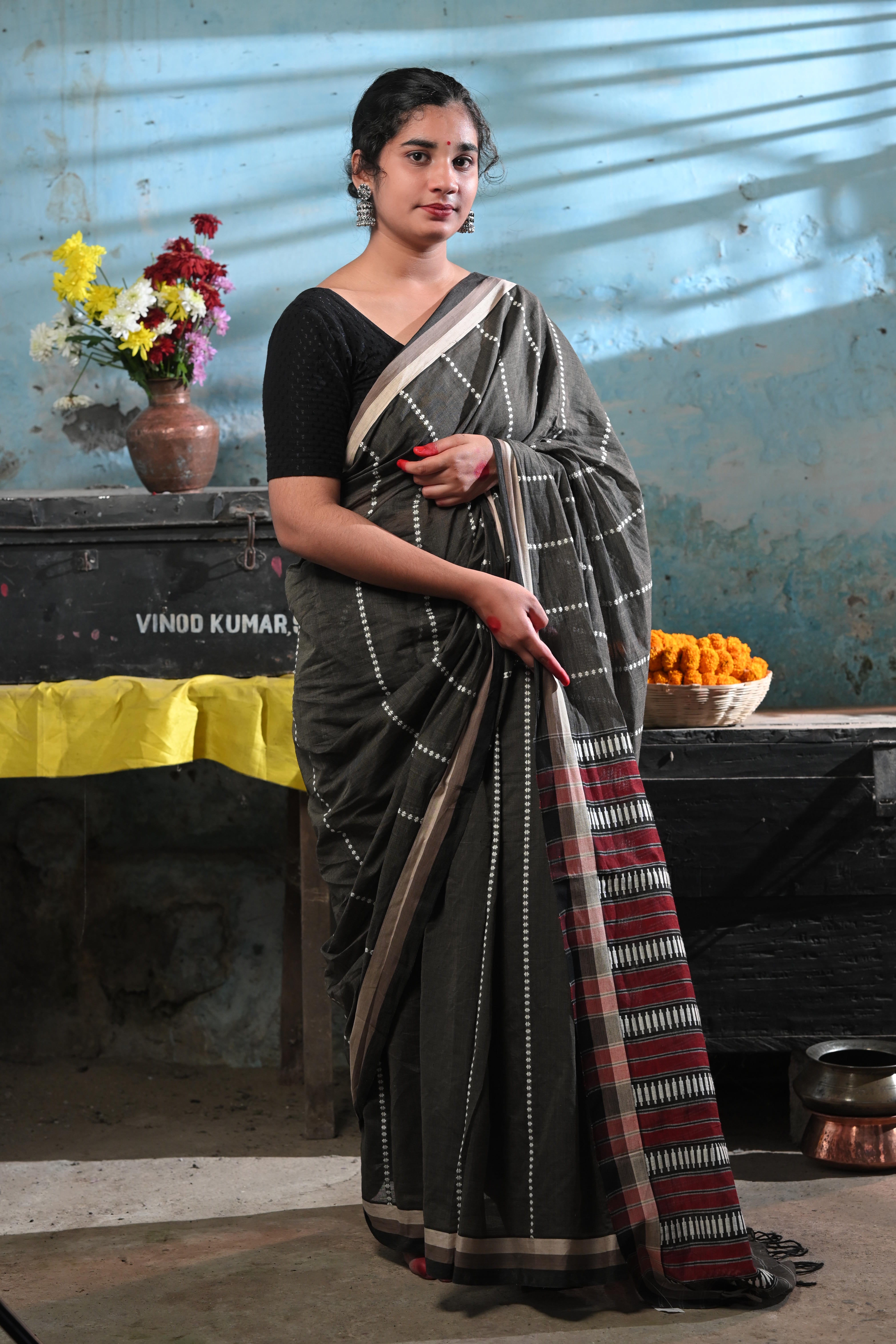 Grey Begumpuri Saree - Pure Cotton Handwoven Cloth