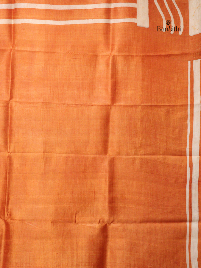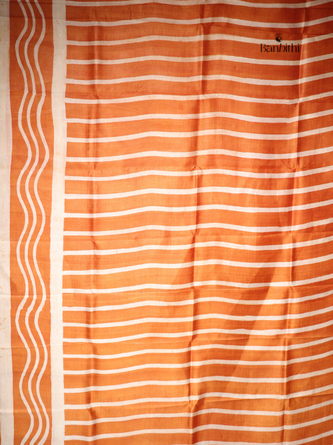 This hand batik Murshidabad silk saree is crafted from one of India’s oldest mulberry silk traditions. The silk threads are obtained from Bombyx mori silkworms and are handspun and handwoven by skilled artisans. Celebrated across Europe during the 18th and 19th centuries, Murshidabad silk is known for its natural sheen and rich cultural heritage.