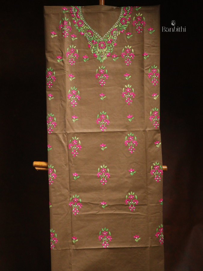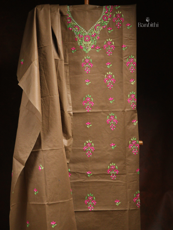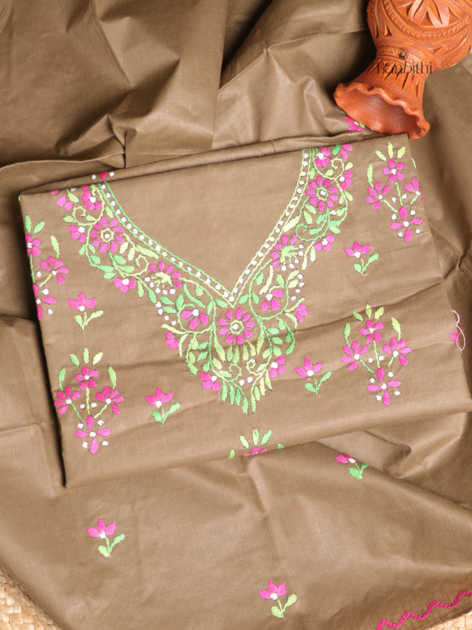 Hand Embroidered Cotton 3-Piece Suit Set – Beige