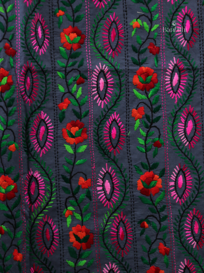 Hand Embroidered Cotton Suit Set – 3 Pcs (Dark Grey)