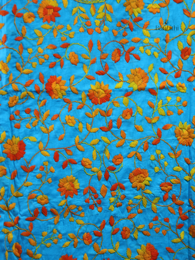 Hand Embroidered Cotton Suit Set – 3 Pcs (Light Blue)