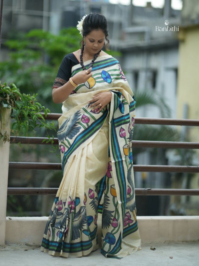 https://banbithi.com/products/hand-painted-gacchi-tussar-silk-saree-off-white