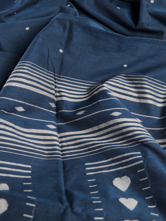Pure Cotton Hand-Spun Jamdani Saree – Blue Mayur