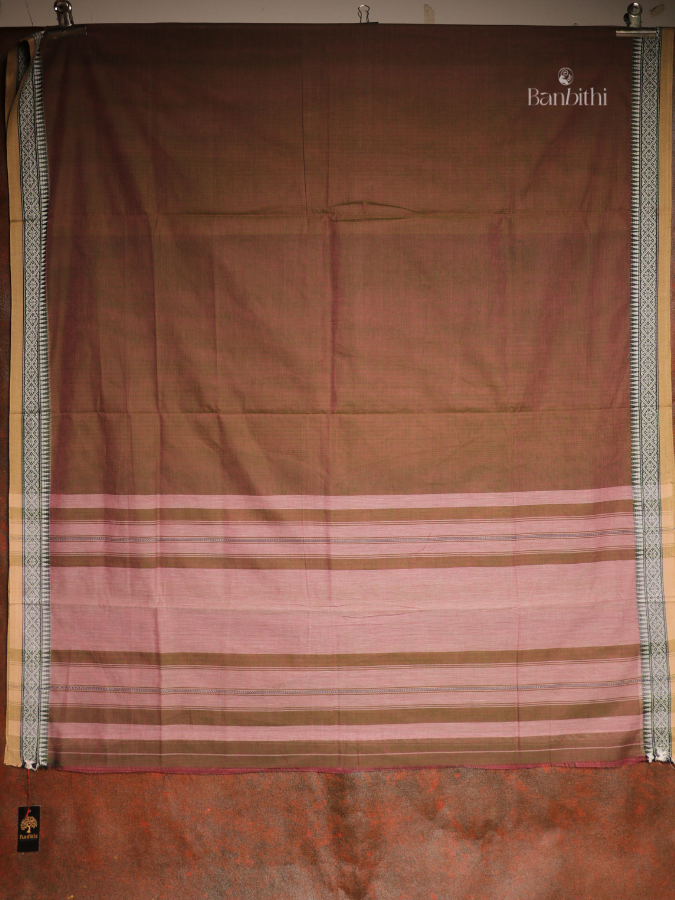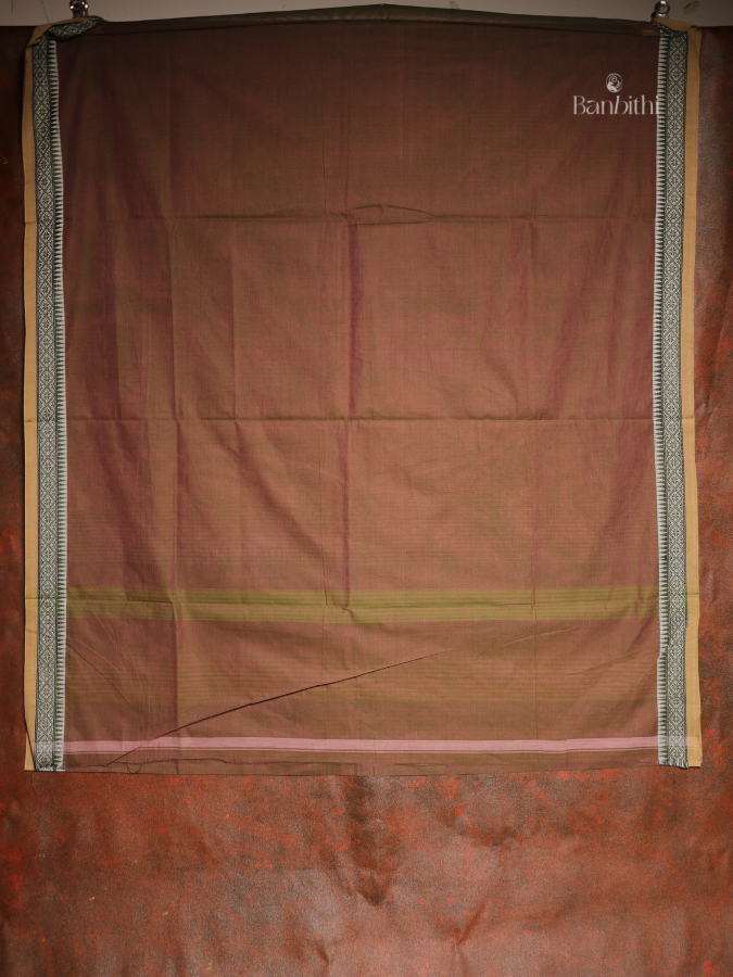 • Pure Cotton Handwoven Dhaniakhali Saree – Dual Tone Brown