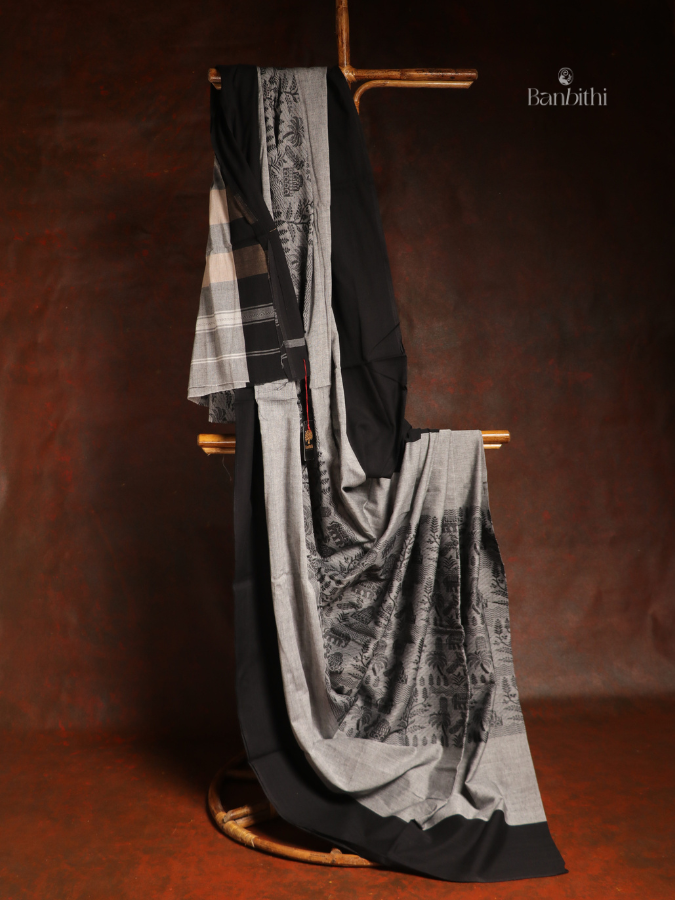 Pure Cotton Handwoven Dhaniakhali Saree – Grey Black Pure Cotton Handwoven Dhaniakhali Saree – Grey Black Pure Cotton Handwoven Dhaniakhali Saree – Grey Black Pure Cotton Handwoven Dhaniakhali Saree – Grey Black
