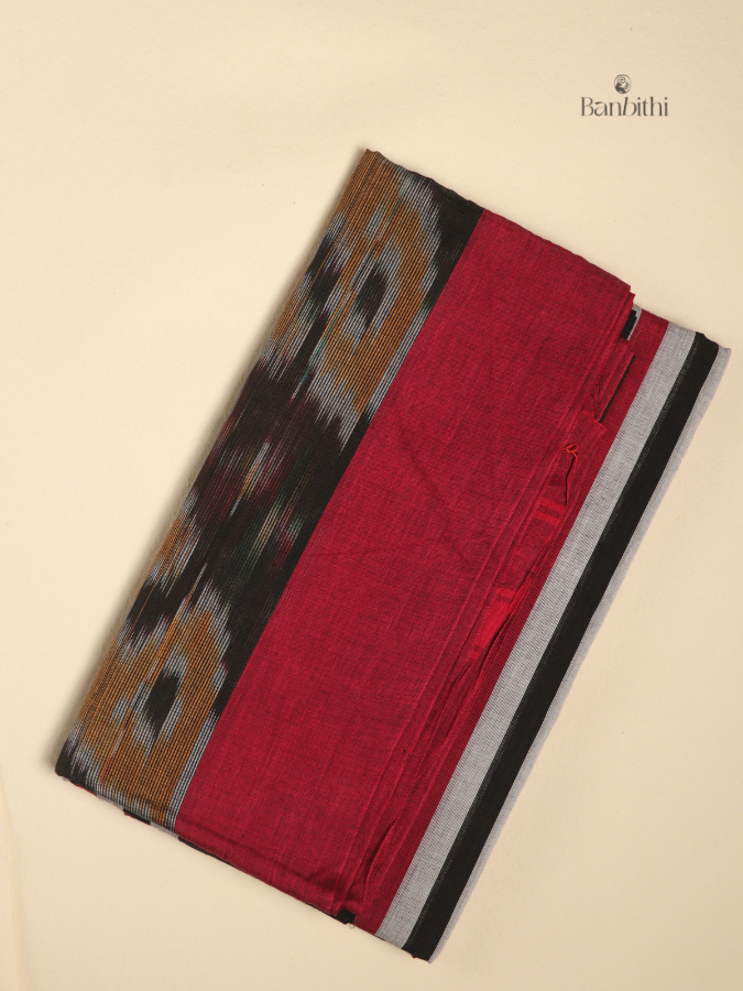 This red and black Dhaniakhali saree is handwoven from pure cotton using traditional Bengal handloom techniques. The fabric is starch-free, breathable, and elegant, making it ideal for everyday and formal wear.