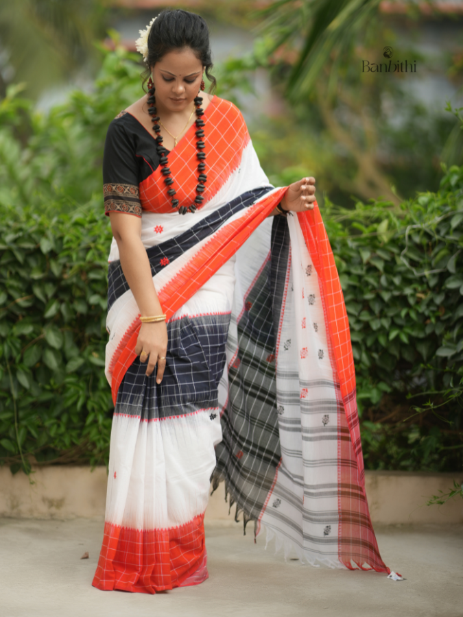Pure Cotton Handwoven Dhaniakhali Saree – White with Orange Pure Cotton Handwoven Dhaniakhali Saree – White with Orange