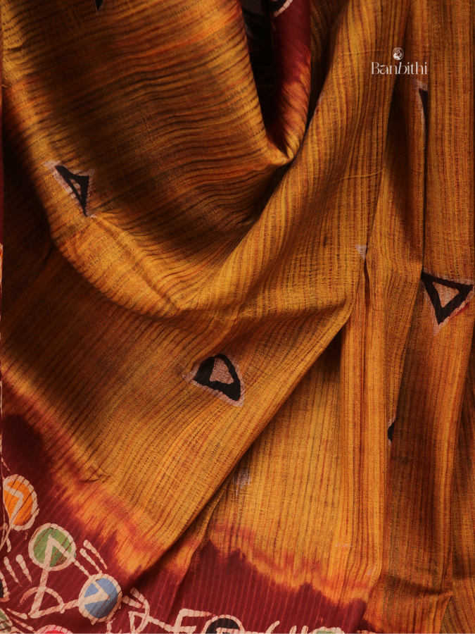 Hand Painted Tussar Kosa Silk Saree – Mustard Yellow