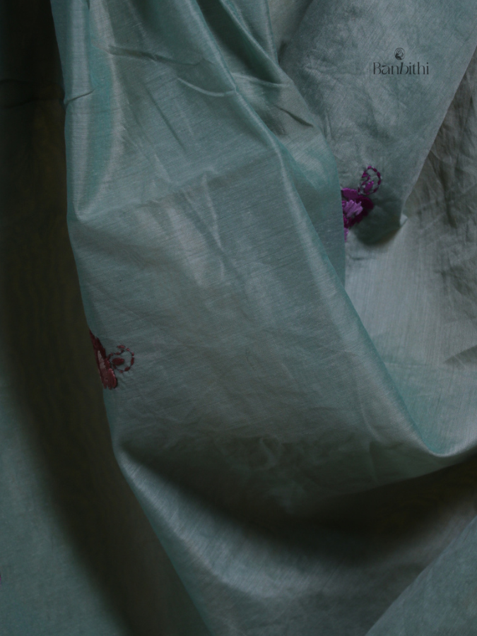 Smoky Grey Heritage Embroidery Chanderi Saree